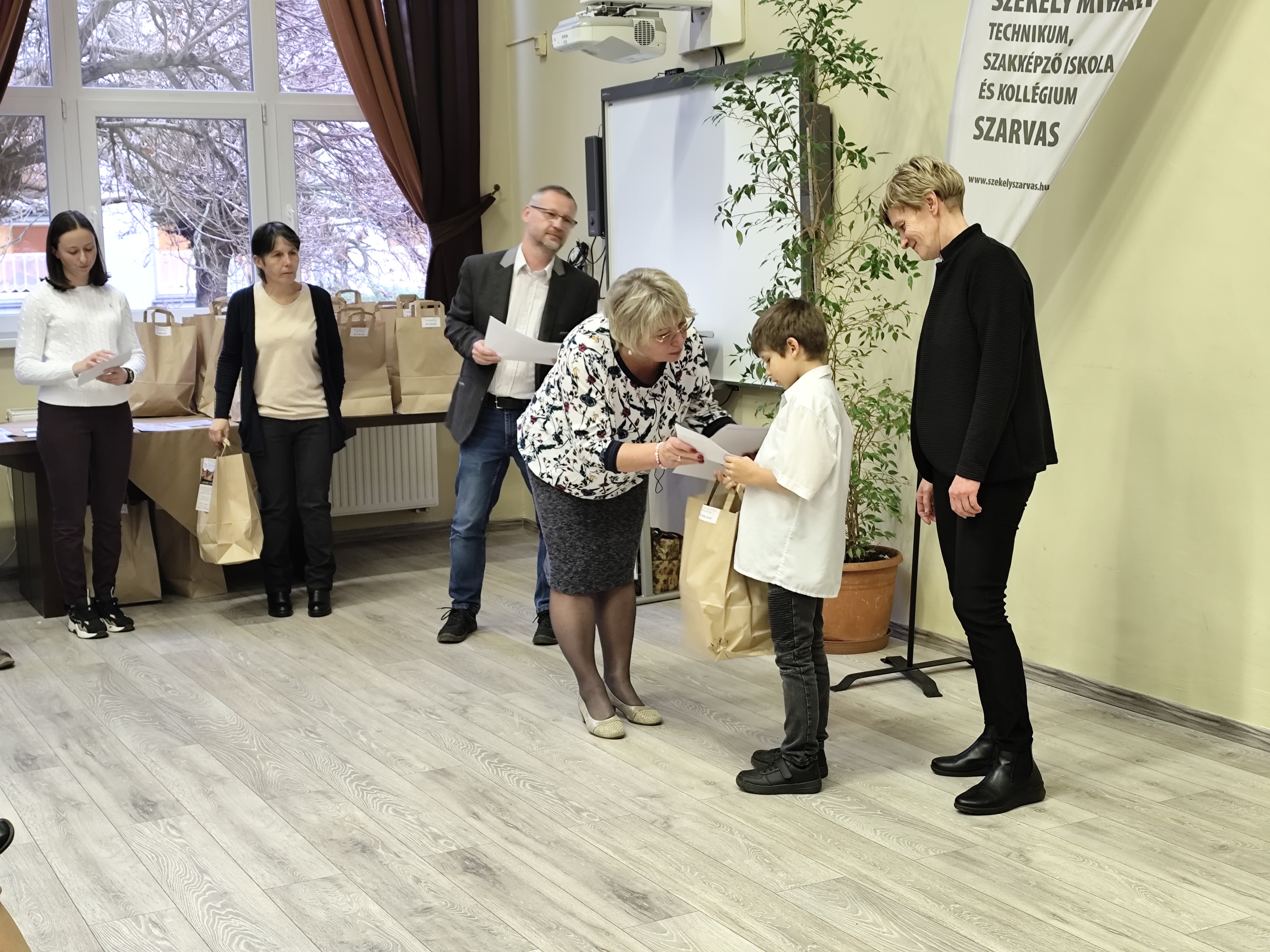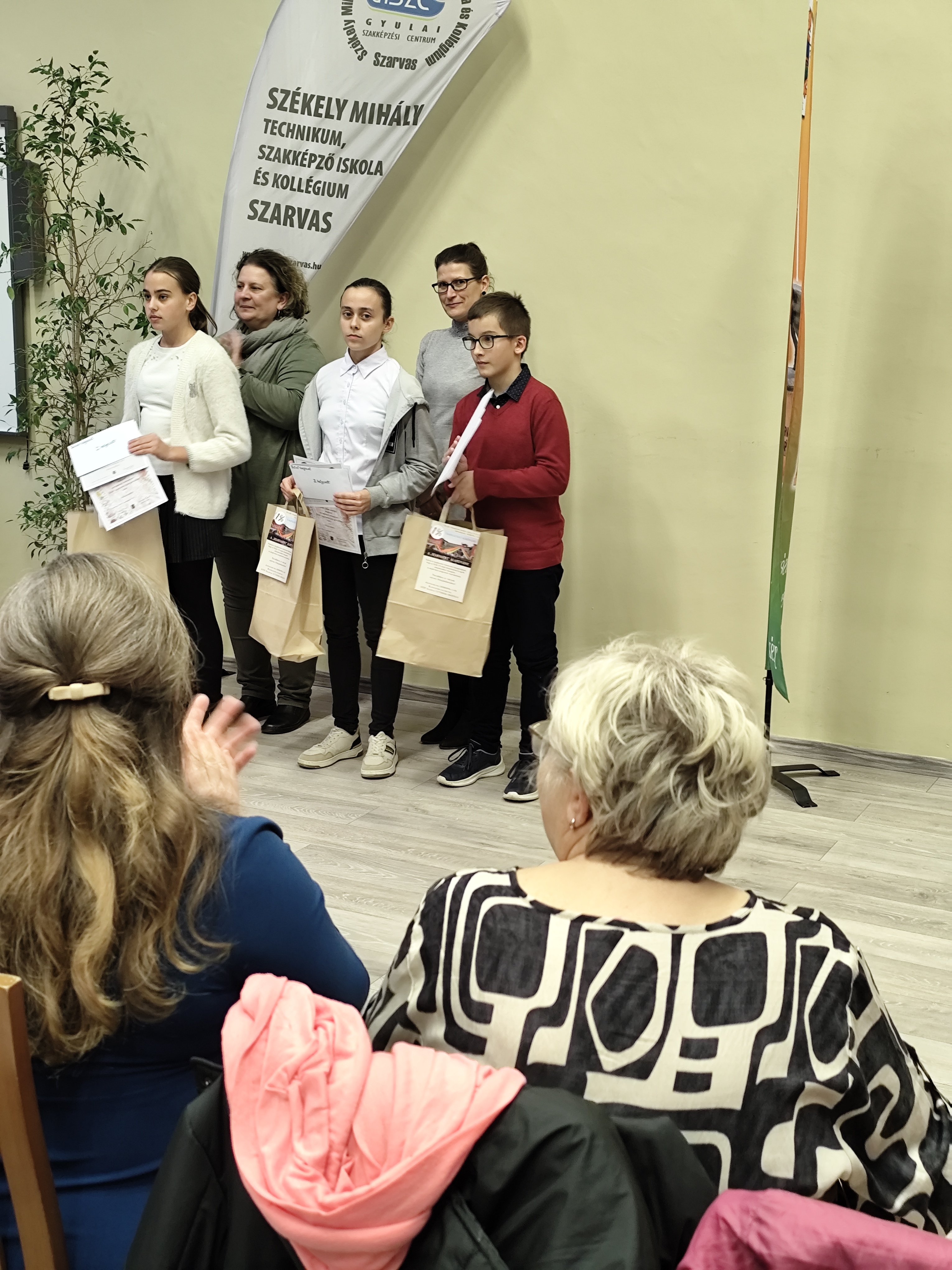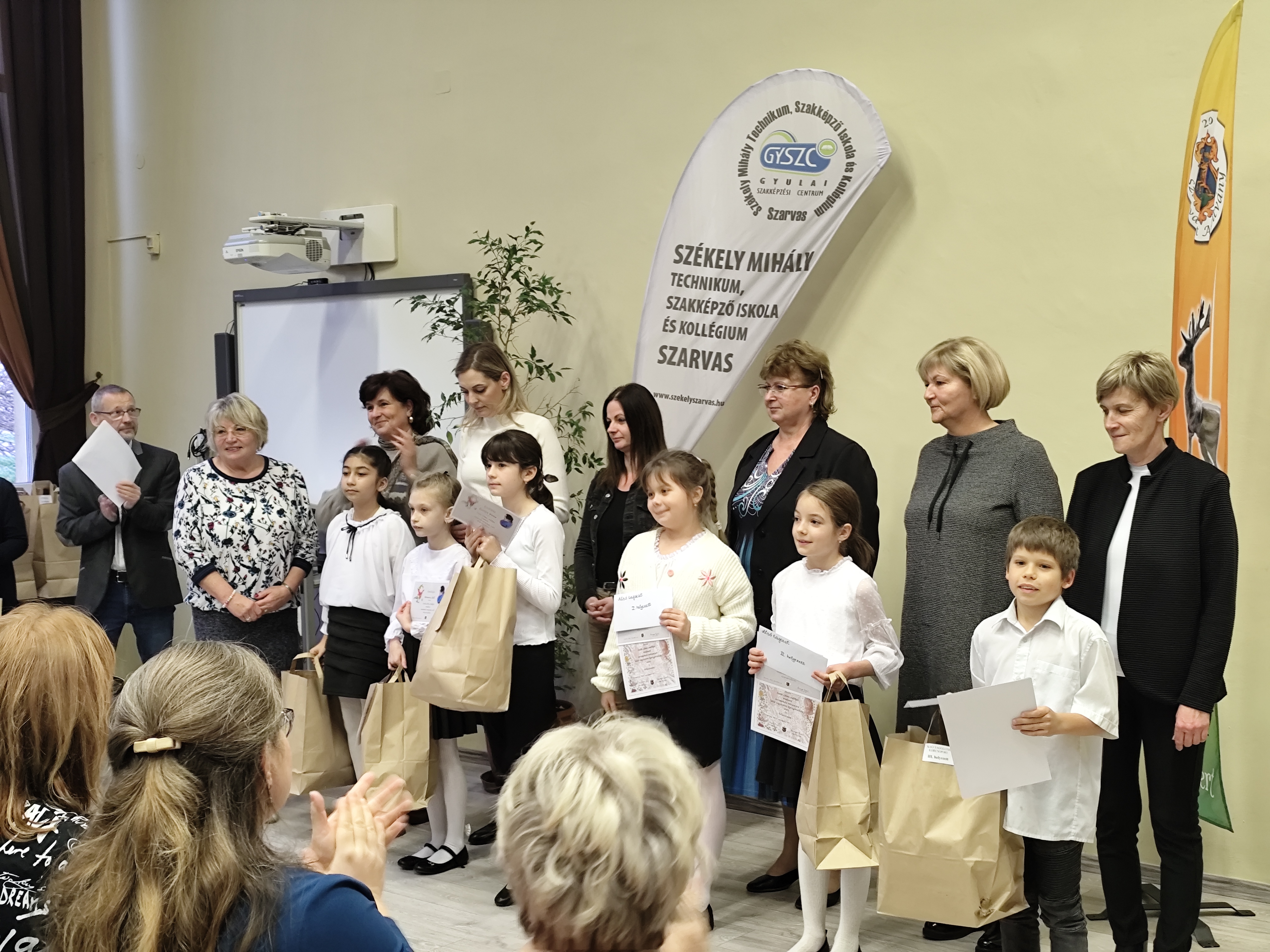 2025. november 14-én a „SZARVASÉRT” Alapítvány 9. alkalommal szervezett versmondó versenyt a szarvasi és Szarvas környéki gyermekek számára, ebben a tanévben „SZABÓ LŐRINC VERSEI” címmel. Iskolánkból két tanulót neveztünk. Mindketten szeretnek verset és mesét mondani, illetve szívesen kipróbálják, hogy milyen közönség előtt szavalni vagy mesélni. A verseiket a felkészítő tanáraik igyekeztek úgy választani, hogy azok összhangban legyenek a tanítványok személyiségével. A gyerekek sokat készültek a megmérettetésre. A versenyen Kanta Laura 8. osztályos tanulónk korosztályában II. helyezést, Oncsik László 3. osztályos diákunk pedig korosztályában III. helyezést ért el. Gratulálunk Nekik!