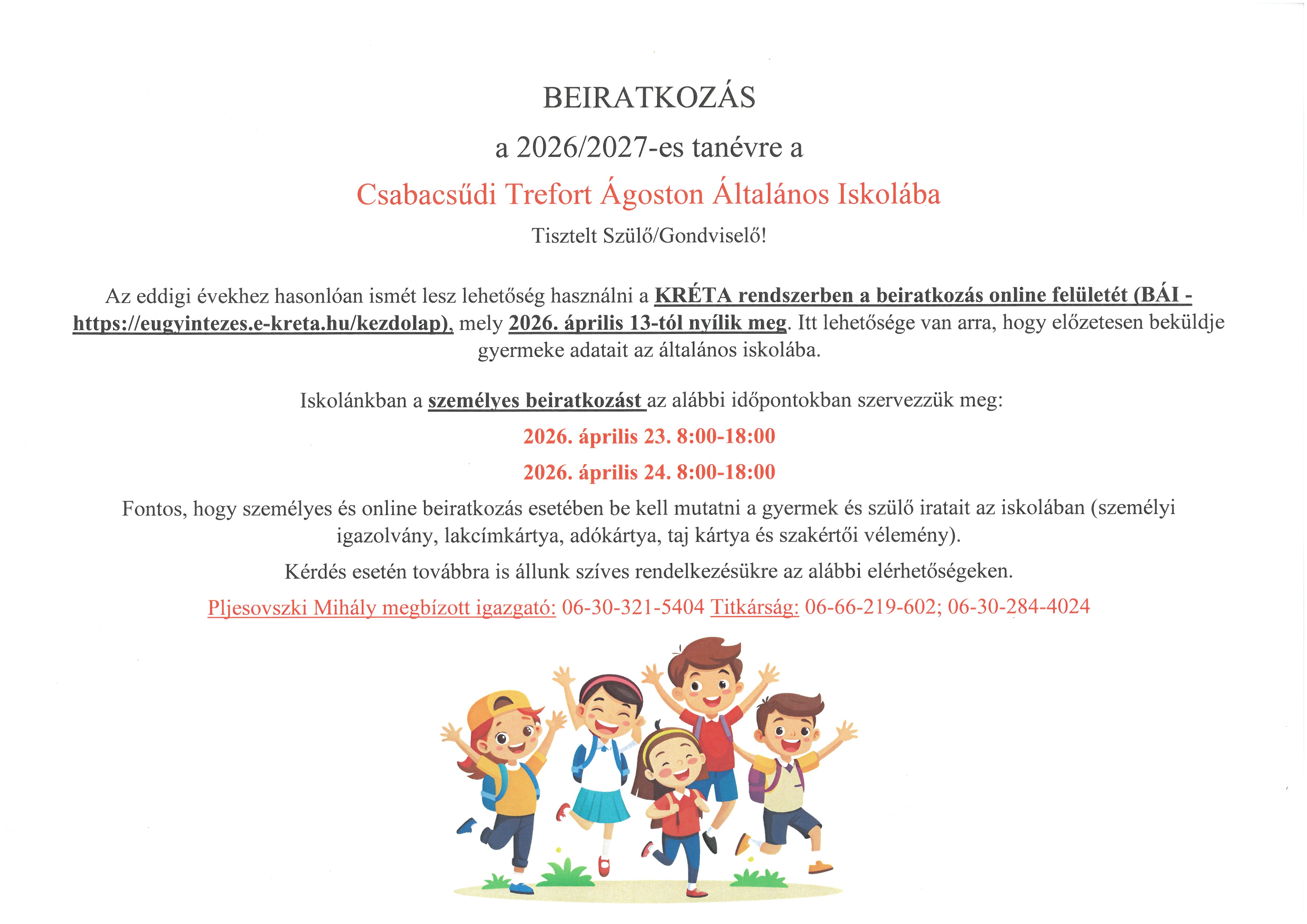 Beiratkozás a 2026/2027-es tanévre.